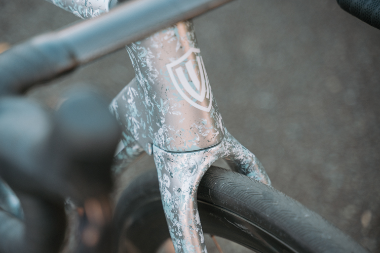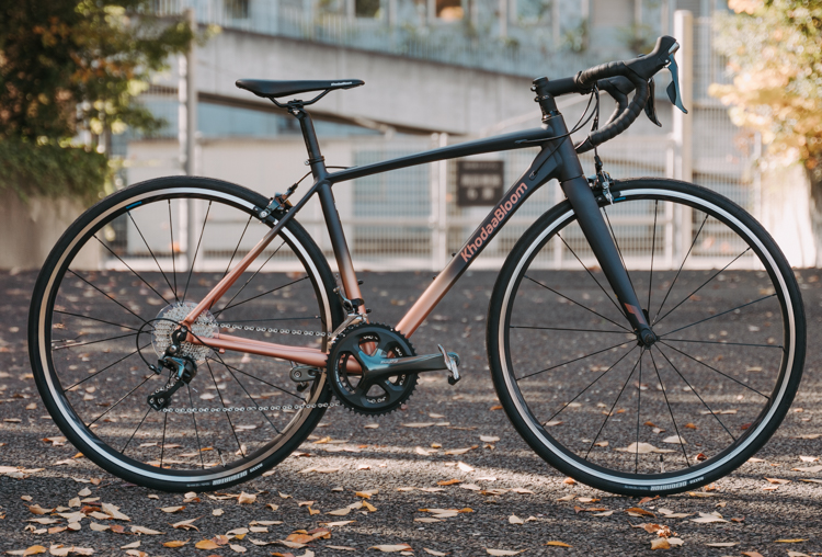 価格は15万円ちょいで、リムブレーキ。このカラー(マットガンメタル/カッパーゴールド)は10万円台中盤とは思えないほどの高級感があります。