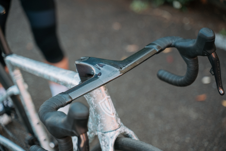 キャノンデールは、トップチューブやシートチューブを極端なまでに薄くし、極太ダウンチューブで剛性を確保し、専用ハンドルで高い空力を与えて、エンデュランスロードにレーシングバイクのエッセンスを注入したのでしょう。