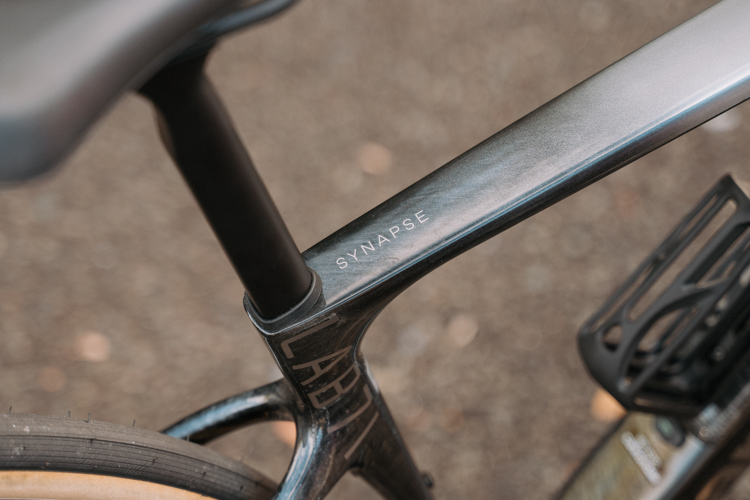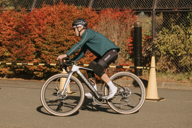実はここが新型シナプスのキモです。走り自体は結構シャープなんです。鋭く加速し、高速巡航性もいい。でもエンデュランスロードらしく、フレームの剛性はマイルドで、快適性も高い。そんな二面性のある自転車です。