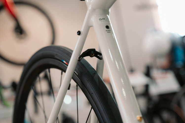 最近のアルミロードは、ディスクブレーキ化にともない28C〜32Cといった太めのタイヤが入るモデルも増えています。ロングライド派や、多少の悪路でも乗りたいという人は、“タイヤをどこまで太くできるか” はしっかりチェックしておくのが吉! かくいう私も、最近太いタイヤに履き替えたばかりなのですが、タイヤを太くするだけで乗り心地がフカフカになって別モノ化しました……! タイヤの太さのMAX値はフレームで決まるため、タイヤクリアランスはじつは超重要です。