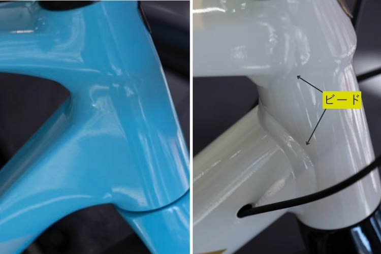 一方、近年増えている「スムースウェルド」は、溶接痕を丁寧に処理することで、フレーム全体をすっきりと見せる仕上げ。まるでカーボンフレームかのごとく、継ぎ目がほとんど見えない上質な仕上がりを見せるものも増えてきました。