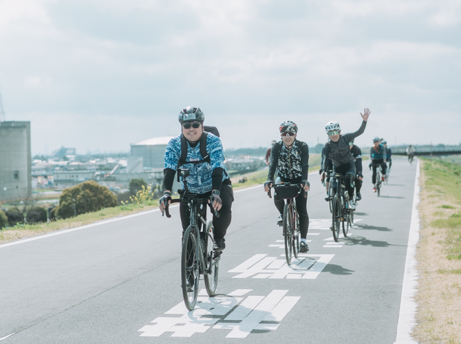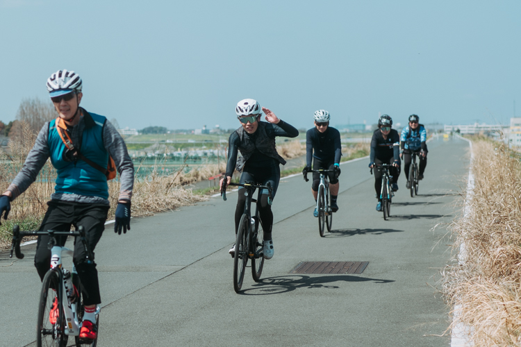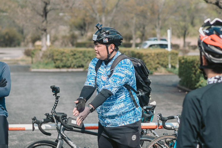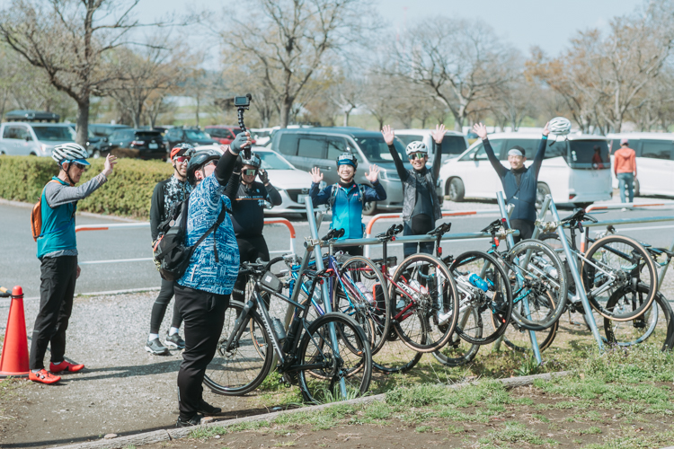 集合場所で今日のルートを確認して、「初心者向けライドなので、ゆるくラクに楽しんでいきましょう!」と全員の認識をあわせたらさっそく彩湖を出発! 先導するのはbuychari JOURNALのYouTubeチャンネルでもおなじみのおかだくんです。