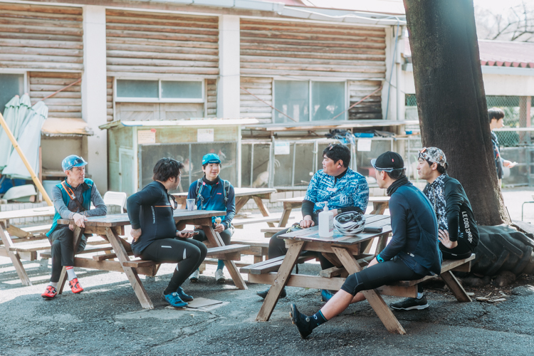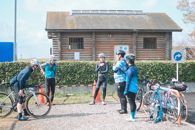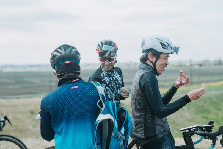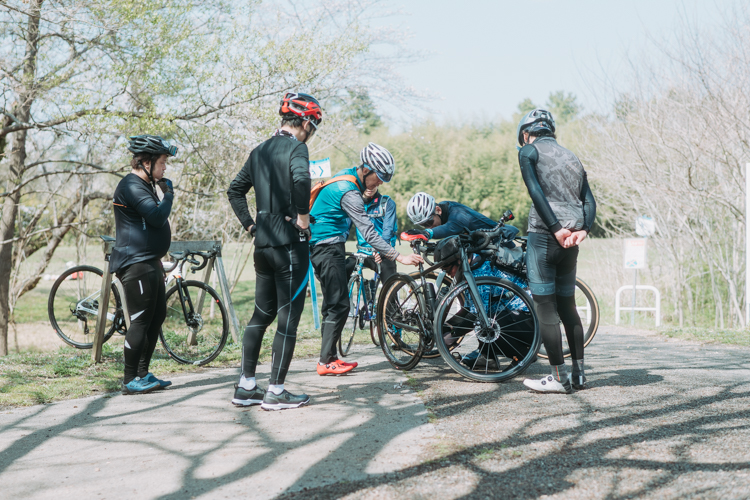 休憩のタイミングでなんとか追いつく形で、みなさんの後ろ姿ばかりを撮りながらついていきます。あ〜〜〜〜普通に片道20km遠い。なんかもうすでにしんどい。