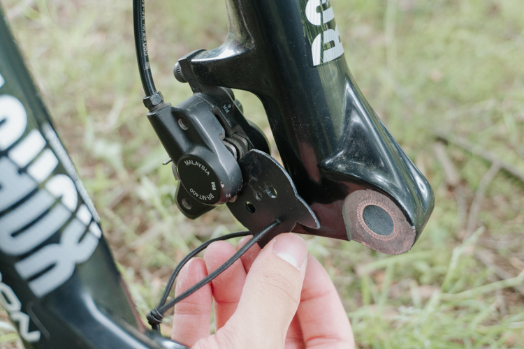 オイルを使わないのでもちろん「エア噛み」の心配は不要、またホイールを外した状態でレバーを握っても、ワイヤー引きの機械式ディスクブレーキは手を離せばパッドは元に戻ります。ワイヤーで動くものは機構がシンプルでトラブルに対応しやすいんですね。