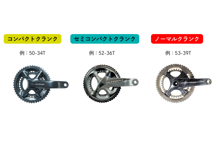 - スピードを出したいなら: 逆に「もっと重いギアを踏んでスピードを出したい」という場合は、コンパクトクランクから「セミコンパクト(52-36T)」などにサイズアップすることで、トップスピードの伸びを強化できます。