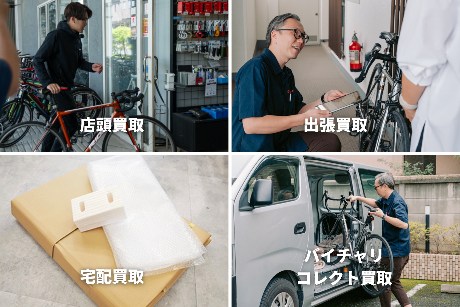 一方、リユース自転車専門店のバイチャリでは4つの買取方法が用意されています。