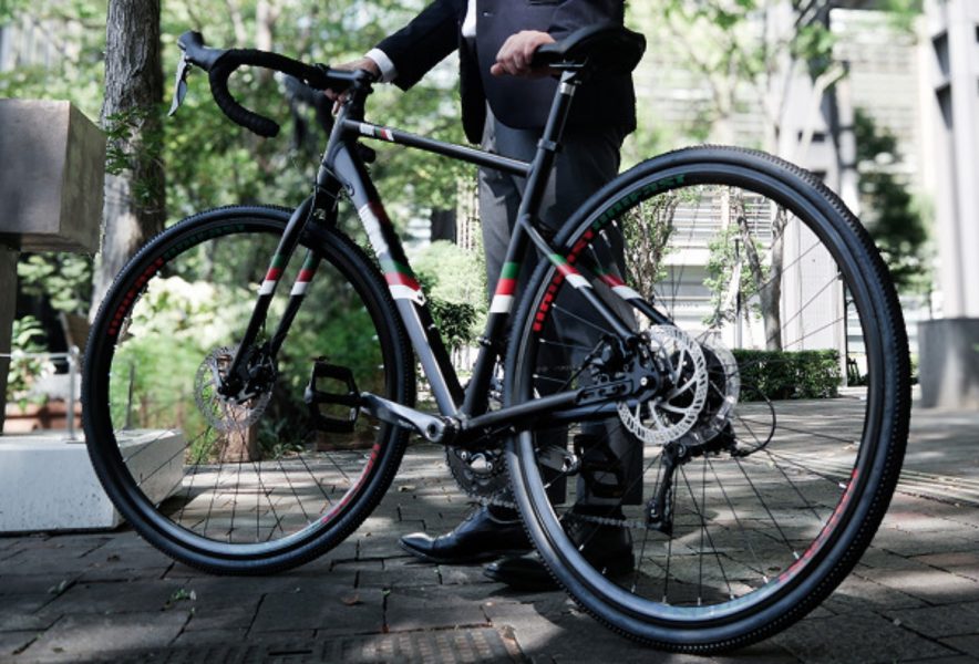 細い路地やカーブなどでも小回りが効くようステムは少し短めに調整されています。タイヤ幅は通常のロードバイクよりやや太めの32mm。荒れた路面でも楽に走れるグラベルロード仕様です。疾走感と安定感を両立したバランスの良い1台となっています。