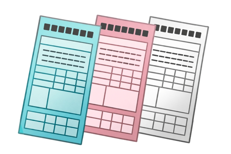 違反の内容によって切られる切符の色が異なる。青切符は「交通反則告知書」、赤切符は「告知票・免許証保管証」が正式名称
