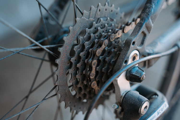 そうして手に入れた自転車は、予想に違わず「要メンテ」な一台でした。まずはこの汚いスプロケットを救いたい! 赤サビがあるけど、落ちるのか?