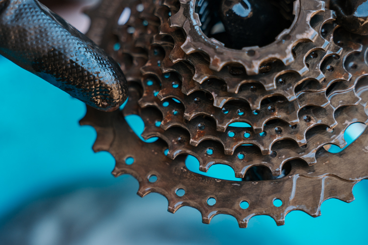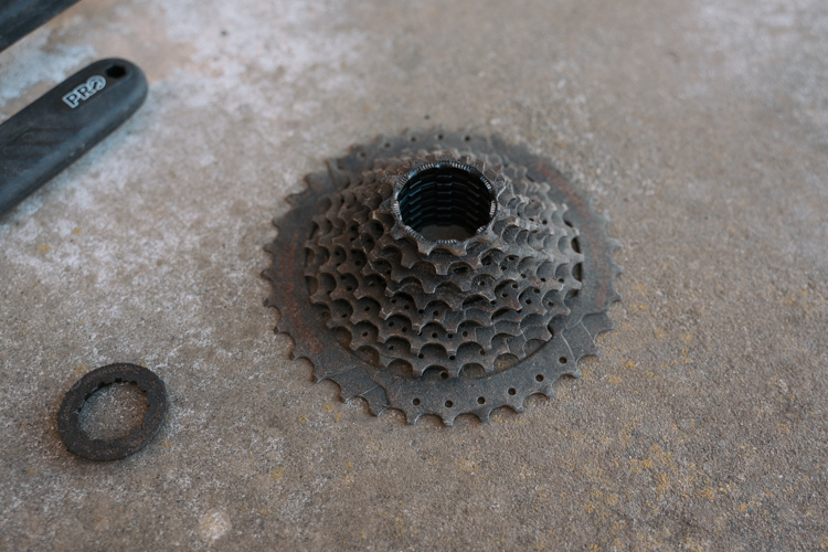 今回のスプロケットは分解できない一体型でしたが、多くのスプロケットは取り外すとバラバラになるため、一枚ずつしっかりと手入れできます。