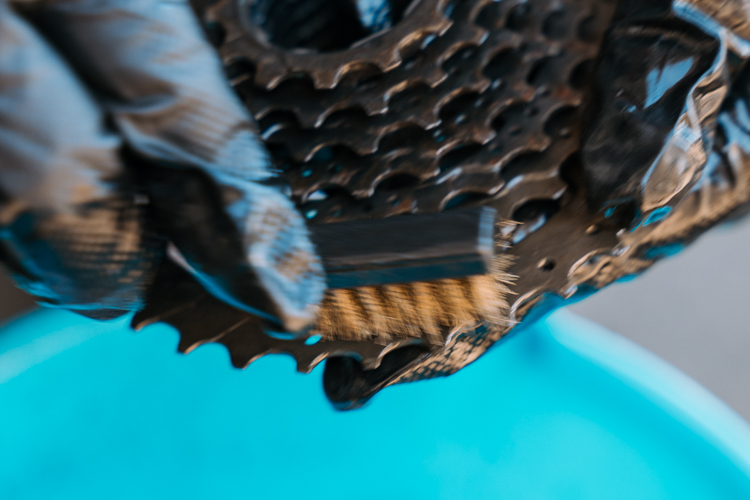 洗浄剤(チェーンクリーナー)を全体にかけ、ブラシを使って汚れを落とします。