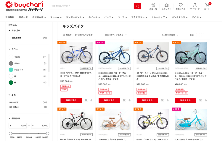 バイチャリのECサイトにもキッズバイクのカテゴリがある