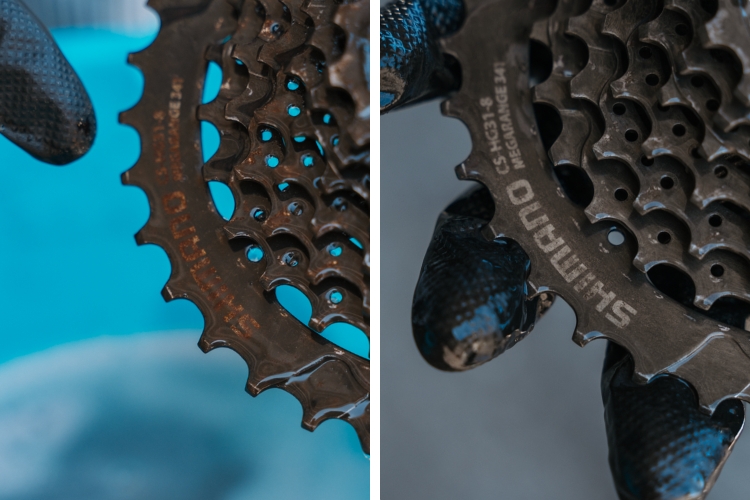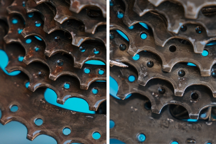 今回のスプロケットは分解できない一体型でしたが、多くのスプロケットは取り外すとバラバラになるため、一枚ずつしっかりと手入れできます。